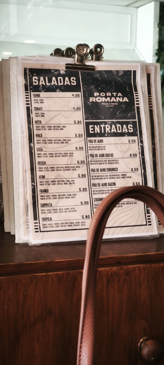 At Porta Romana Pizzeria in Cascais, the menu offers a variety of traditional and beloved Italian dishes, with a focus on pizzas and pastas. The Margherita Pizza stands out as a classic, its simple yet delicious combination of fresh tomato sauce, mozzarella, and basil making it a must-try for pizza lovers. For those looking for something a bit more unique, the Pizza da Casa Muito Boa is a house specialty that promises a satisfying blend of flavors, featuring a rich selection of toppings. Pair any of these with a refreshing Sumo de Laranja, a freshly squeezed orange juice, to complement the meal perfectly. Pasta enthusiasts will also be delighted by the creamy Massa Carbonara, which offers a rich, comforting experience with its perfectly cooked pasta, pancetta, and a velvety egg-based sauce. With its welcoming atmosphere and high-quality ingredients, Porta Romana Pizzeria's menu brings a touch of Italy to Cascais.